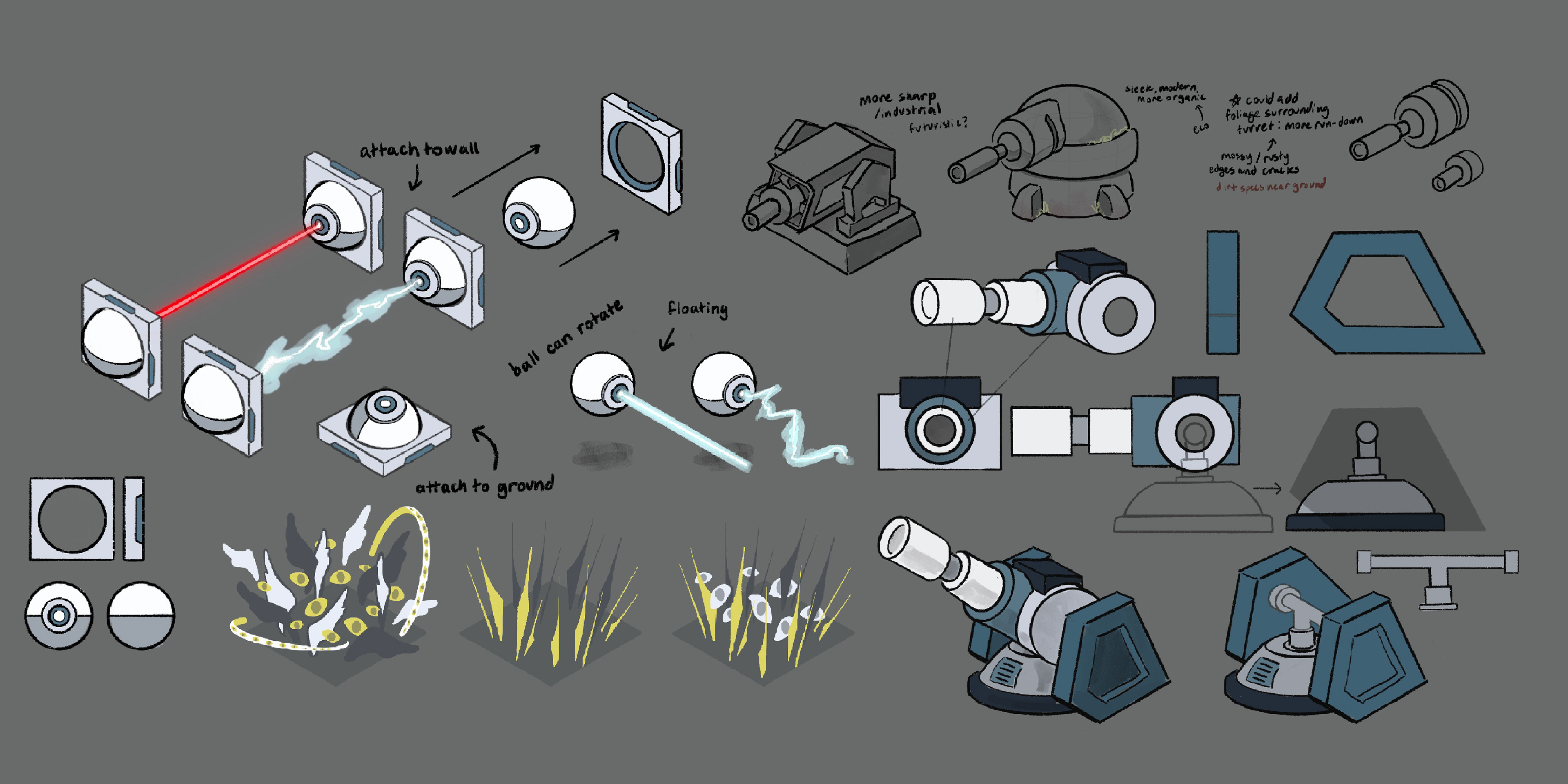 I designed many different game assets including aesthetic set pieces to differentiate the worlds, platform designs, texture materials to attach to 3D objects, and weapon obstacles for players to navigate.