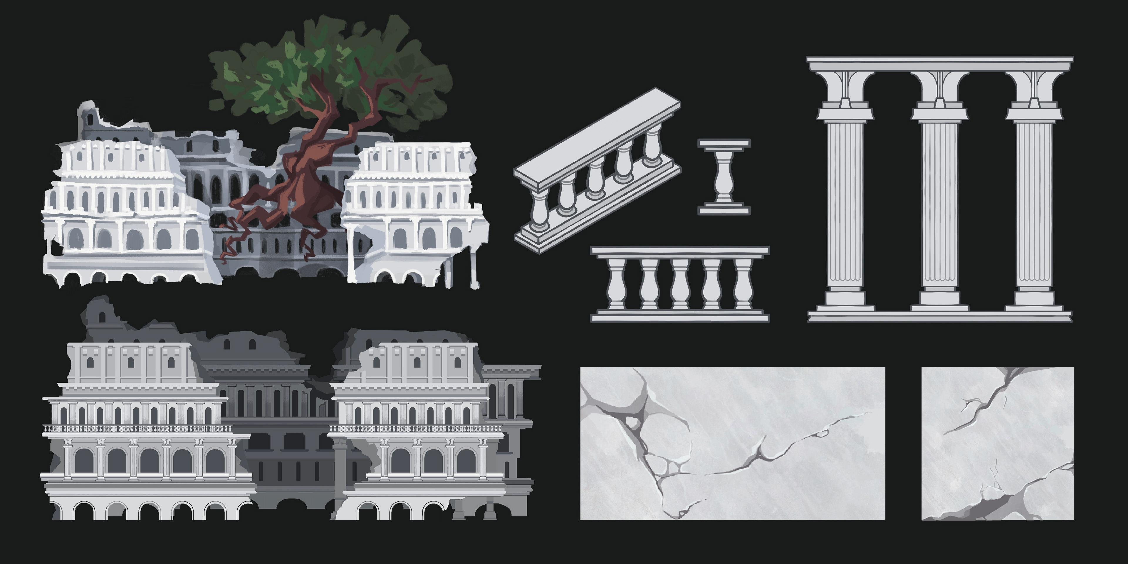 We created two worlds to play through: abandoned industrial city and ancient overgrown ruins